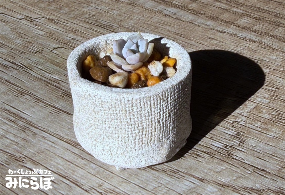 小物で2個ほど、ミニ鉢で1個作れます